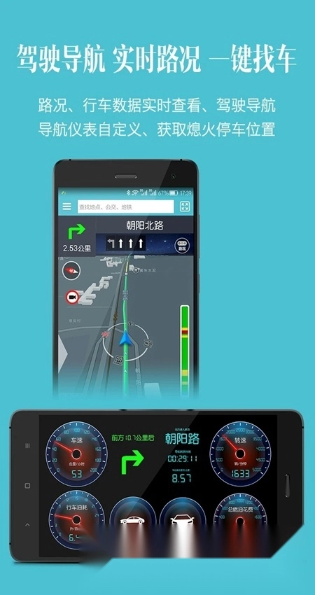 集成驾驶导航与实时路况功能,可自定义导航仪表样式,并能记录停车位置信息。