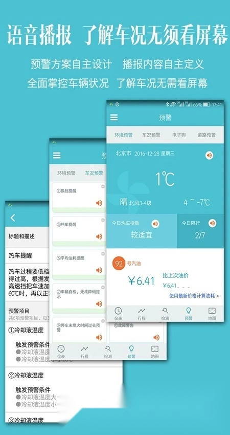 提供天气预报、洗车指数以及紧急救援电话,为出行规划给出参考;
