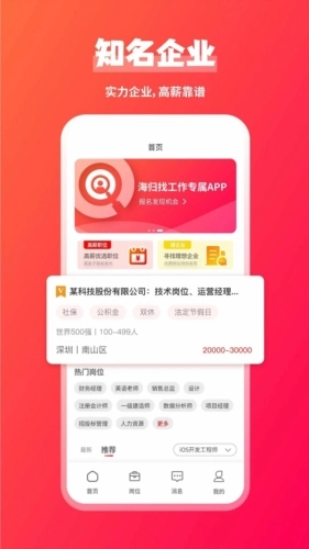 JOBS海归网招聘凭借丰富的求职招聘功能与便捷的用户体验,为海归人才和企业构建起高效互通的桥梁,既助力海归人才寻觅理想工作,也帮助企业招纳高端人才。平台汇聚海量高薪岗位与名企大厂,海归人才可轻松投递展现优质资源,系统精准匹配真实信息并提供安全保障,HR在线直聊功能支持随时随地沟通,反馈及时高效。