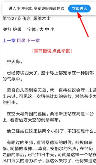 接下来进入小说阅读页面后,大家只需点击上方的“立即进入”按钮,就能直接进入小说模式了。