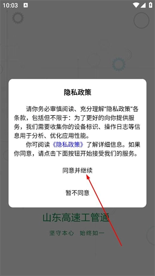 在隐私政策弹窗中,点击同意,进入登录页面。