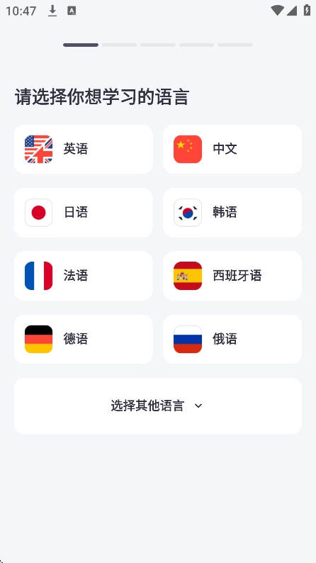 1、进入软件后,首先选择需要学习的语言。