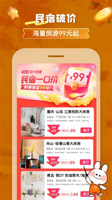 途家民宿手机版能让大家在线浏览各地民宿信息,用户在线找到心仪的民宿后,直接下单即可。这款软件会为用户提供品质保障,还会及时推送各类优惠和活动,所有房源均为真实有效,确保大家都能找到满意的选择。