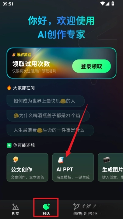 对话专区则是公文创作、aippt等功能