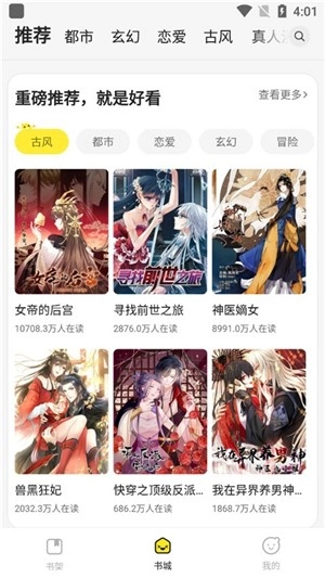 进入178漫画的书城,这里提供了都市、玄幻、恋爱、古风、冒险等多种类型的漫画,你可以点击进入自己想看的漫画。