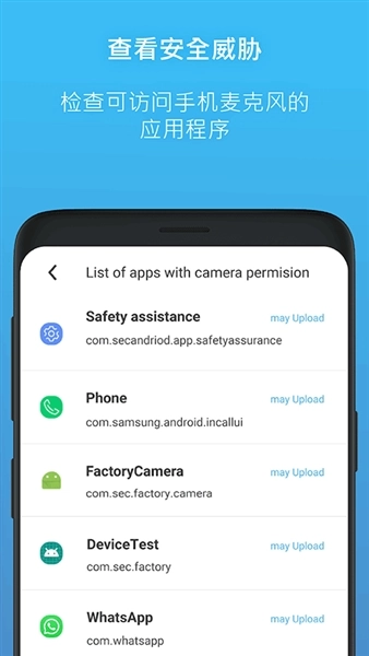 自动识别并展示所有获得相机权限的应用清单,一旦有新安装的应用取得摄像头权限,就会主动向用户发出提醒。这样能让用户清楚掌握手机摄像头的使用状况,对相关情况了然于胸。