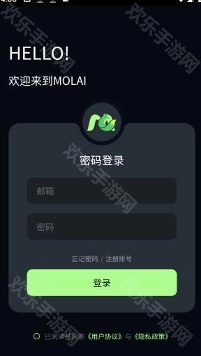 启动molai软件后,点击界面底部的“注册”按钮,开始创建新账户。