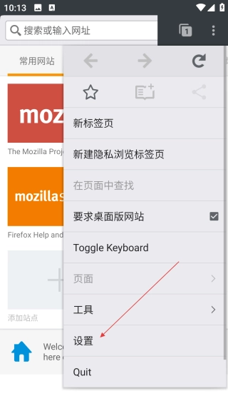 在弹出的菜单里,选择【设置】这一选项,即可进入浏览器的设置页面。