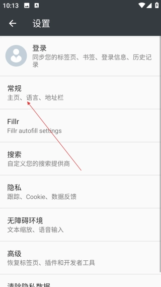 在设置页面找到【常规选项】并点击,进入对应的设置界面。