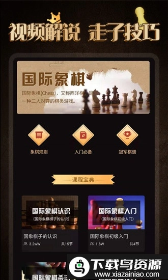 包含完整的国际象棋教学体系,像入门引导、残局根基、中局提升等内容;
