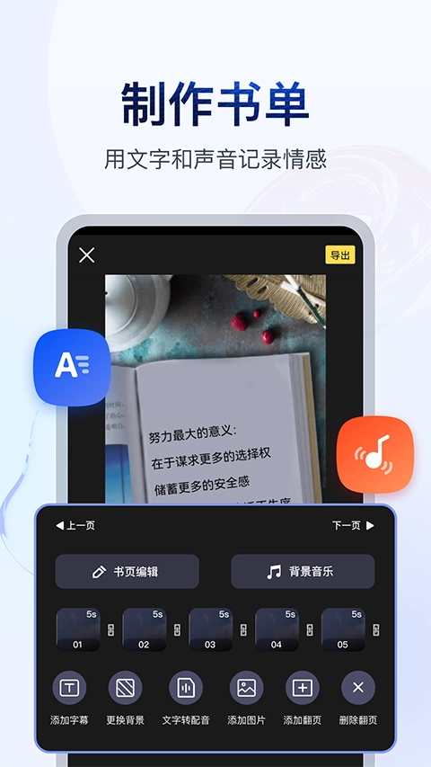 一键生成书单视频,只需几步就能完成文字配音、配乐与动画处理。