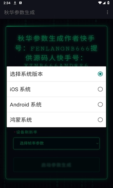 用户在本平台安装并启动秋华参数生成器后,填写设备型号相关信息。