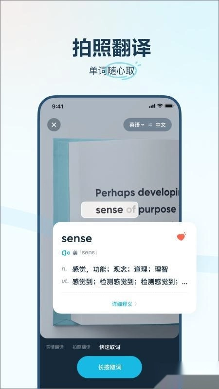 支持摄像头取词功能,借助强大的OCR技术,能够顺畅识别多种语言,无需手动输入就能实现快速翻译。