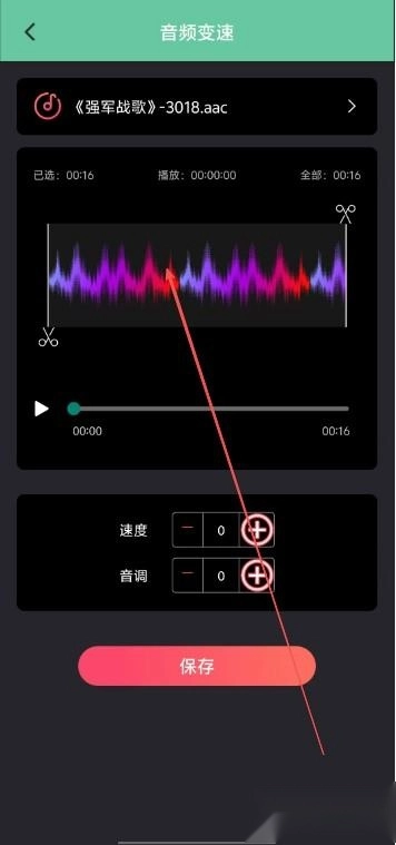 最后选择需要变速的音频,接着根据自身需求对速度和音调进行个性化调整,完成后点击保存就可以了。