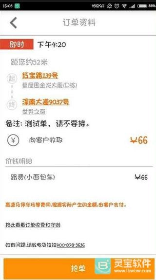 进入订单详情页后,我们能看到起始位置,要是觉得合适,就点击抢单按钮。