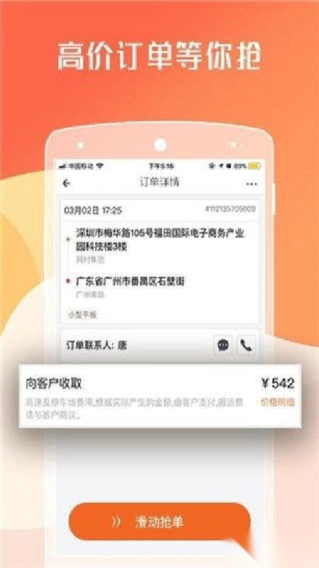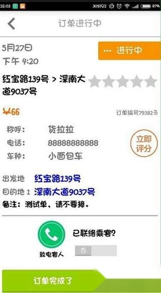 接单成功啦,现在可以给客户打电话沟通啦,等协商妥当后再前往客户那里,把货物送到指定地点后就能点击完成订单了,千万别忘了点击完成哦。
