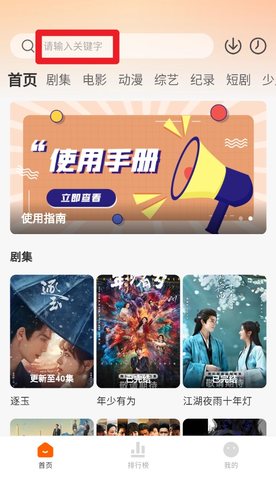 如图所示,在主页涵盖多个板块的资源,点击搜索框。