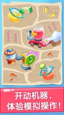 在加热容器里让糖块融化,用混合器把果汁汽水充分融合,再通过灌装机将果汁灌装完毕……充满神奇与趣味的机器世界,正等待你大展身手!