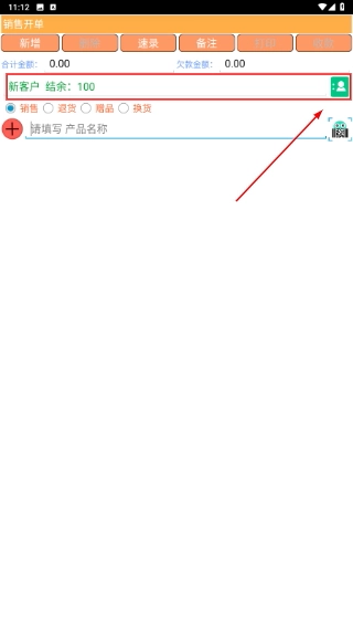 客户信息添加完成后返回开单页面,就能看到刚添加的客户余额信息,点击右侧信息栏就能进入详细页面查看。