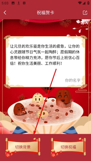 在元旦贺卡的编辑页面,点击【切换背景】按钮,即可进入贺卡背景的样式选择界面。