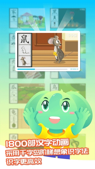 我们拥有1800部汉字动画,通过专属的识字方法,让汉字的音、形、义高度融合,使孩子的识字过程变得更高效、更轻松。