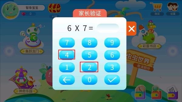 在家长验证界面,输入【6乘以7】的计算结果,完成验证后就能进入设置页面。