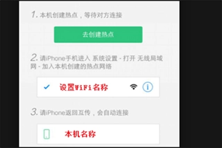 创建WiFi热点,等待对方连接,连接成功后传文件