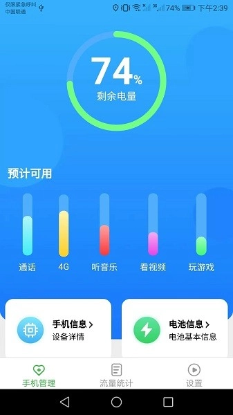 详细电量信息:除了流量信息外,该软件还会提供电量相关信息,用户能够知晓手机的电量状况,从而及时制定电量管理策略。