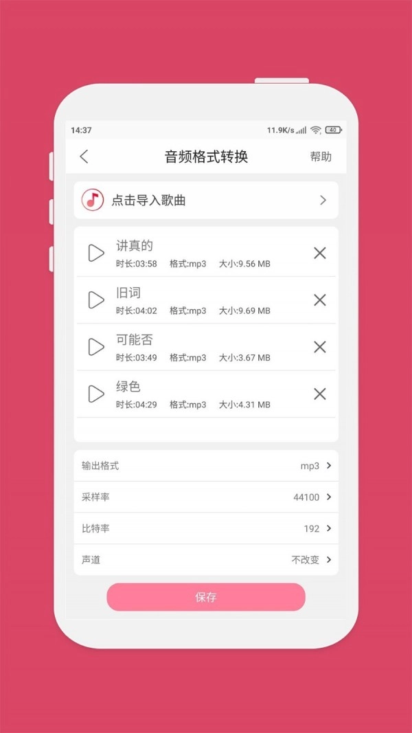 音频转换:可实现各类主流音频格式间的转换,像MP3、flac、m4a、wma等格式均在支持范围内。