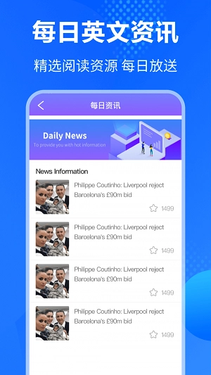 软件每天都会实时更新,还会推荐英文资讯,能帮你提升英语知识储备。