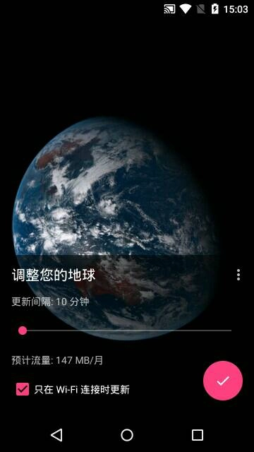 为你呈现来自卫星的不断变化的地球照片。壁纸更新的时间可以由你自由选择,短则十分钟,长可达两小时。