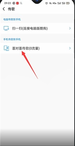 接着选择“面对面传歌”功能,扫描对方的二维码就能完成歌曲传输。