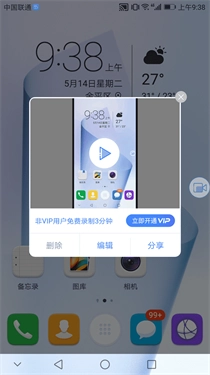 悬浮窗菜单具备开始、暂停、停止与截屏等实用功能,使录制操作更为便捷;此外,它还支持通过“通知栏”展示录制状态和时长,为用户带来优质的录屏体验。