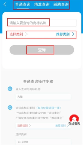 选择查询方式,输入商标名称。