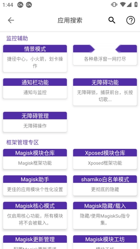 部分高级功能(例如Magisk模块管理、Xposed框架支持)需要ROOT权限,操作前请确认设备已获取ROOT权限,不然可能会造成功能无法正常使用或者系统出现异常情况。