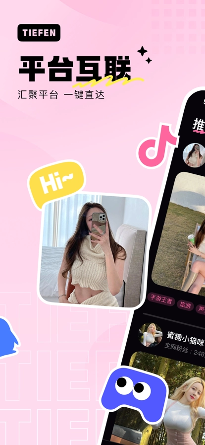 铁粉空间是一款专注于创作者与粉丝互动的内容分享平台。在这里,你可以查看喜欢的创作者的全平台账号,一键跳转关注;也能查看Ta的最新动态,成为最了解Ta的铁粉。平台为粉丝和创作者(如网红、博主等)搭建了沟通桥梁,用户可直接搜索感兴趣的创作者,一键直达各平台关注,使用十分便捷。