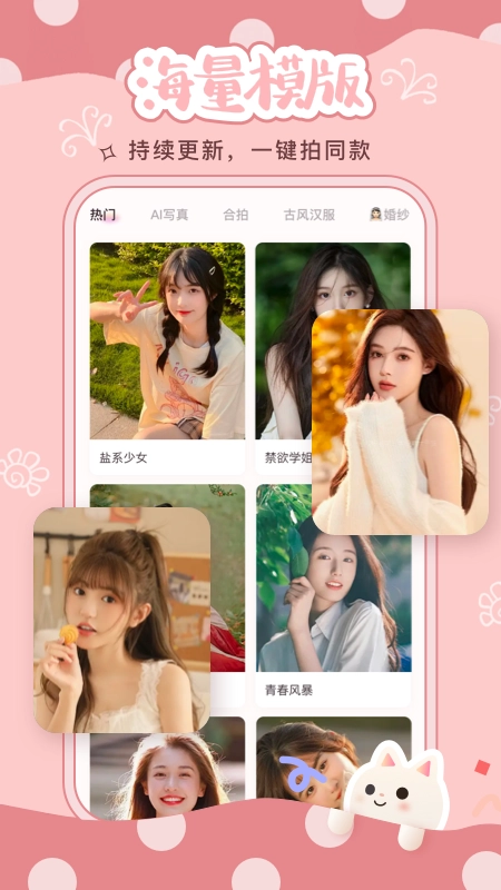 素颜也能拍出大片效果:借助强大的AI技术,系统能自动识别并优化面部特征,即便不化妆,也能轻松拍摄出专业水准的照片。