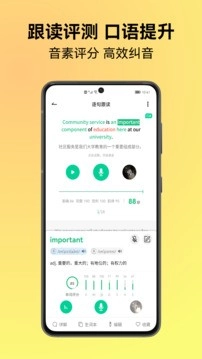 同时还能通过跟读不同文章内容来进行测评,检验自己的水平。