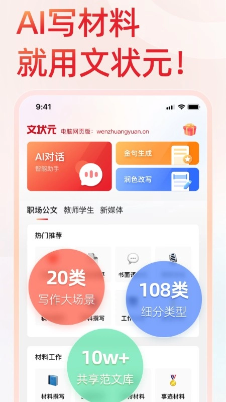 状元文库作为国内公文写作领域的领先工具,通过对语言风格的深度打磨与时政内容的实时更新,能够为用户提供覆盖20个写作大场景、108种细分类型的高质量服务,同时具备7大方向的金句增强功能及超10万篇的共享范文资源,堪称公文写作的得力帮手。无论是机关、事业单位还是学校等各类机构的用户,都能借助状元文库在多种写作场景中高效完成公文材料的撰写,即便无需专业提示词,也能精准产出所需内容,为工作带来极大便利。