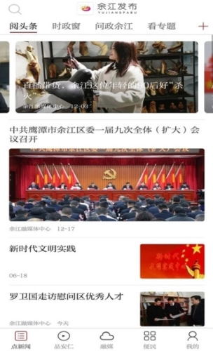 打开余江发布软件并进入主页后,马上查看新闻页面中划分的各个栏目。