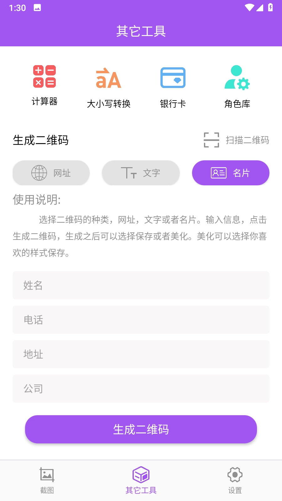 其他功能:像网页长截图、二维码生成、计算器、大小写转换这类实用小工具也包含在内。
