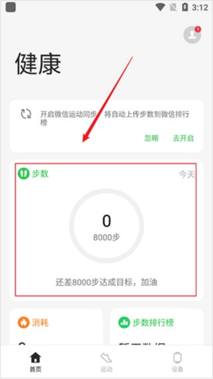 绑定好了之后我们的运动信息情况可在首页中查看;