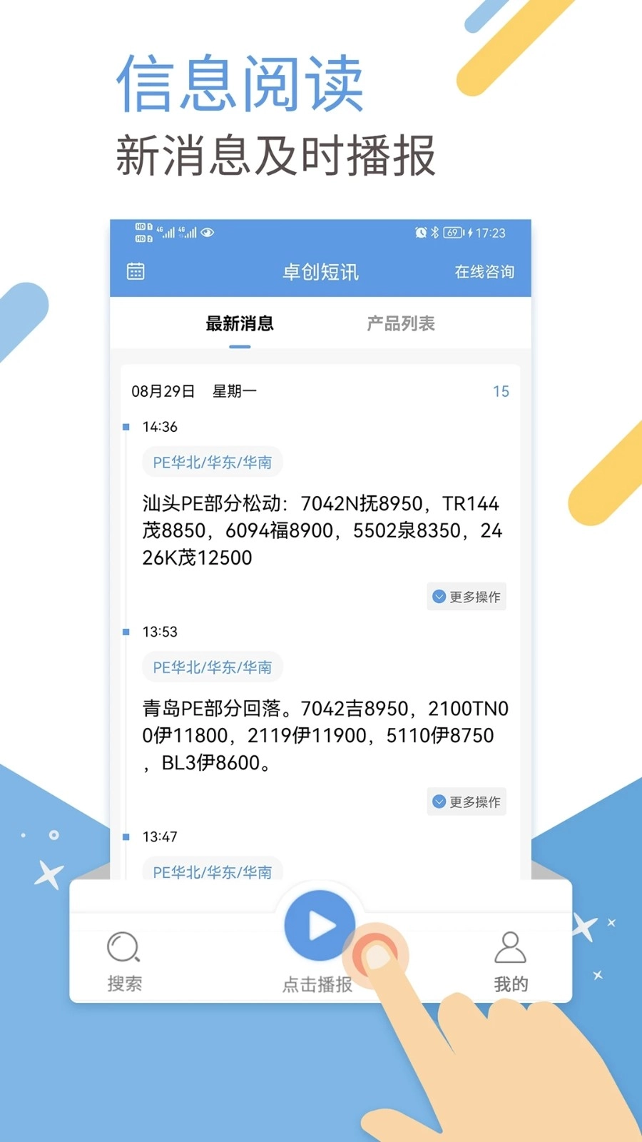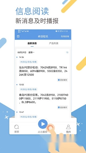 用户可以通过卓创短讯手机客户端,随时随地获取自己需要的内容,想听就听。