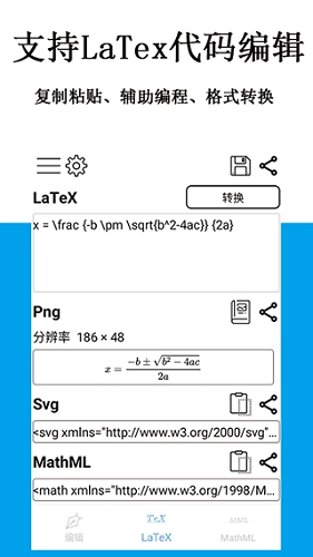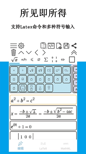 创新的LaTeX代码编辑与执行功能:可直接在应用内编辑并预览LaTeX代码效果,大幅简化了科学写作流程。