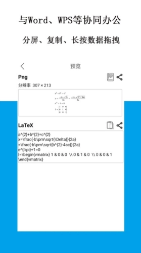 公式编辑器能够简化用户在撰写论文、笔记或报告时处理复杂公式的工作。凭借简洁直观的界面设计,即便是初次使用的用户也能迅速掌握操作方法。这款应用支持多种符号输入方式,涵盖常用的数学符号、箭头、希腊字母、几何图形以及集合运算符等。无论是基础运算还是高级演算,都可以轻松处理。另外,用户还能通过该平台将生成的LaTeX、PNG、SVG或MathML格式的公式分享到其他文档中,从而实现跨平台的协作编辑,显著提升工作效率。