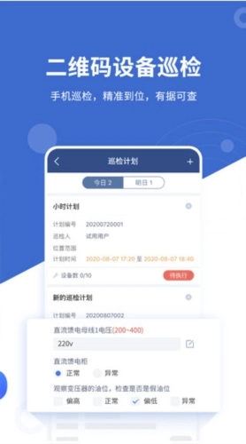 管理人员在平台上制定巡检计划,巡检人员按照规定周期和具体巡检项目开展巡检工作,把巡检结果反馈给巡检确认人,以便及时识别设备隐患,开展预防性维护。