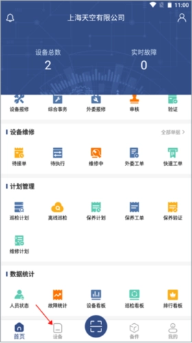 注册账号并登录软件后,首页会呈现出丰富的功能选项,接着点击底部菜单栏中的“设备”模块进行切换。