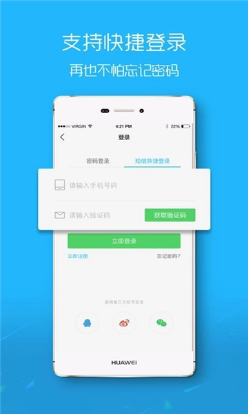 支持多种登录方式,用户可通过手机号、微信、微博、QQ实现快速一键登录,操作十分便捷。
