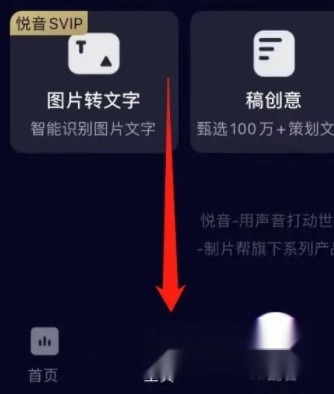 打开悦音配音应用,点击界面上的【悦音】按钮进入,随后就能进入到功能主页。