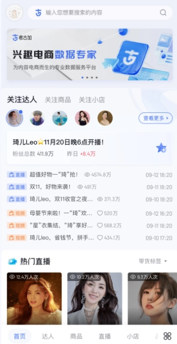 在数字化浪潮席卷生活的当下,短视频与电商早已融入日常,成为不可或缺的存在。面对竞争白热化的行业环境,考古加作为聚焦短视频与电商领域的专业数据分析工具,致力于为从业者提供全面高效的数据分析支持,助力其在行业竞争中抢占先机。 通过实时直播监控功能,考古加能帮助用户精准把握热门直播间的流量波动与带货动态,快速锁定热销商品,优化直播选品逻辑。平台整合全品类商品数据,用户可实时追踪市场趋势,深度拆解商品起量路径,复制爆款成功经验。 在达人合作环节,考古加通过多维度筛选体系,帮助用户快速定位高带货能力的优质达人,并结合全方位历史数据进行综合评估,确保合作决策更精准。有需求的伙伴不妨一试!